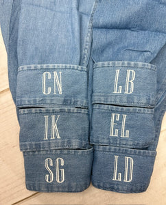 Embroidered Cuffs on Denim Shirts - Initials in Engraved Font