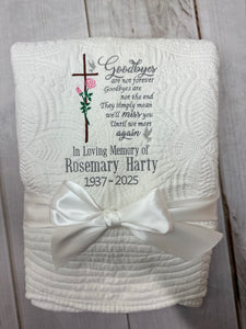 Cross with Rose Memorial Quilt | Bereavement Gift | Sympathy Gift | Remembrance Gift | Memorial Blanket | Hug Blanket | Funeral Gift