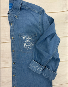Mrs. XXX - Bride's Get Ready Shirt - Embroidered POCKET + CUFFS